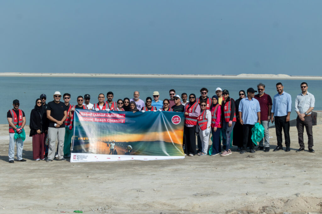 The University of Technology Bahrain (UTB) reaffirmed its strong commitment to community engagement, environmental awareness, and sustainability through the successful conduct of its annual beach cleaning initiative at Karranah Beach, organised by the College of Engineering in collaboration with the Northern Governorate. The event brought together UTB faculty, staff, students, and alumni under the university’s community engagement initiative, UTB CarEs, promoting unity, responsibility, and active participation toward a cleaner environment for all.
