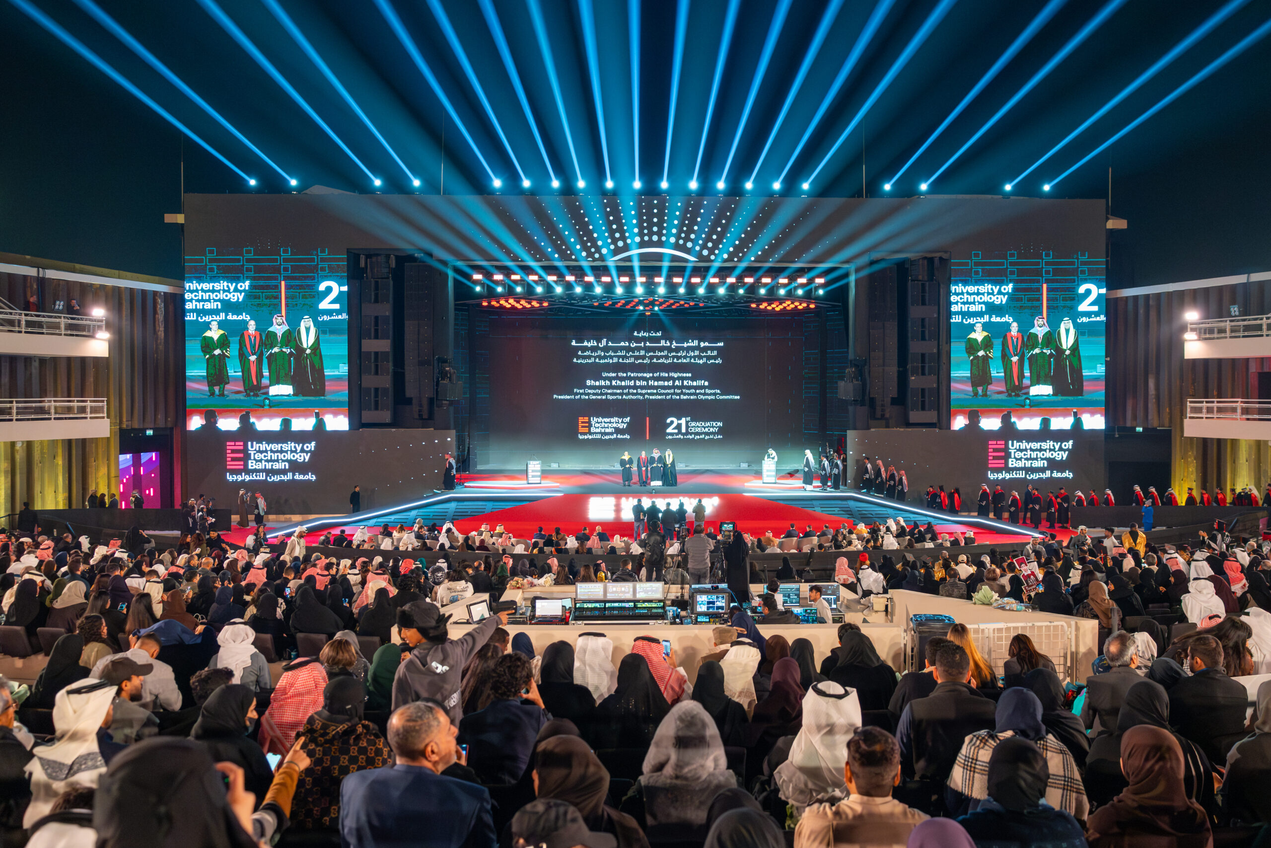 Under the gracious patronage of His Highness Shaikh Khalid bin Hamad Al Khalifa, First Deputy Chairman of the Supreme Council for Youth and Sports, President of the General Sports Authority, and President of the Bahrain Olympic Committee, and in the presence of His Highness Shaikh Faisal bin Khalid bin Hamad Al Khalifa, the University of Technology Bahrain (UTB) proudly celebrated its 21ˢᵗ graduation ceremony on January 26, 2026, at the Al Dana Amphitheatre, with the inspiring theme “One UTB, One World,” reflecting the university’s commitment to diversity, internationalisation, and global engagement.