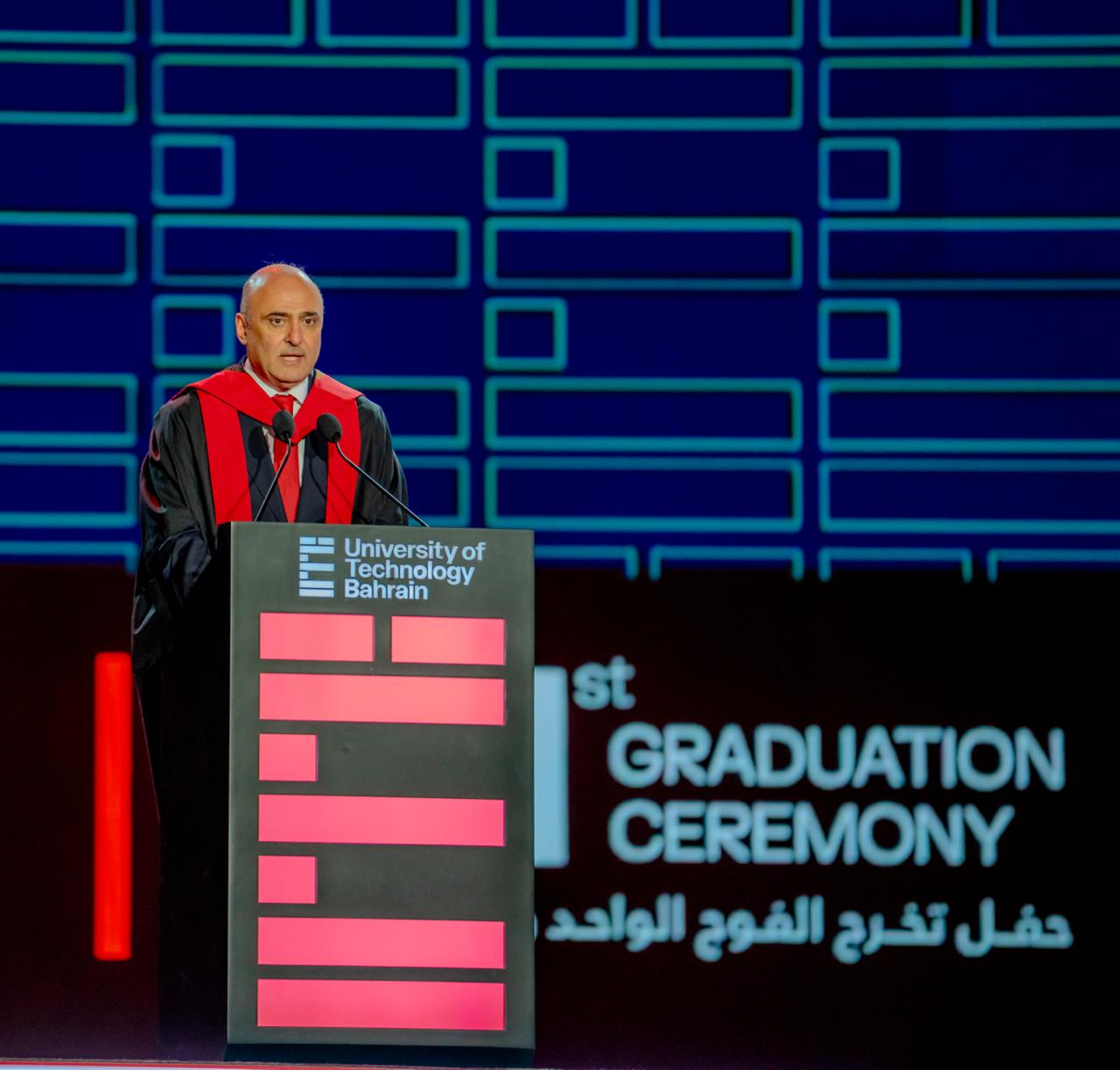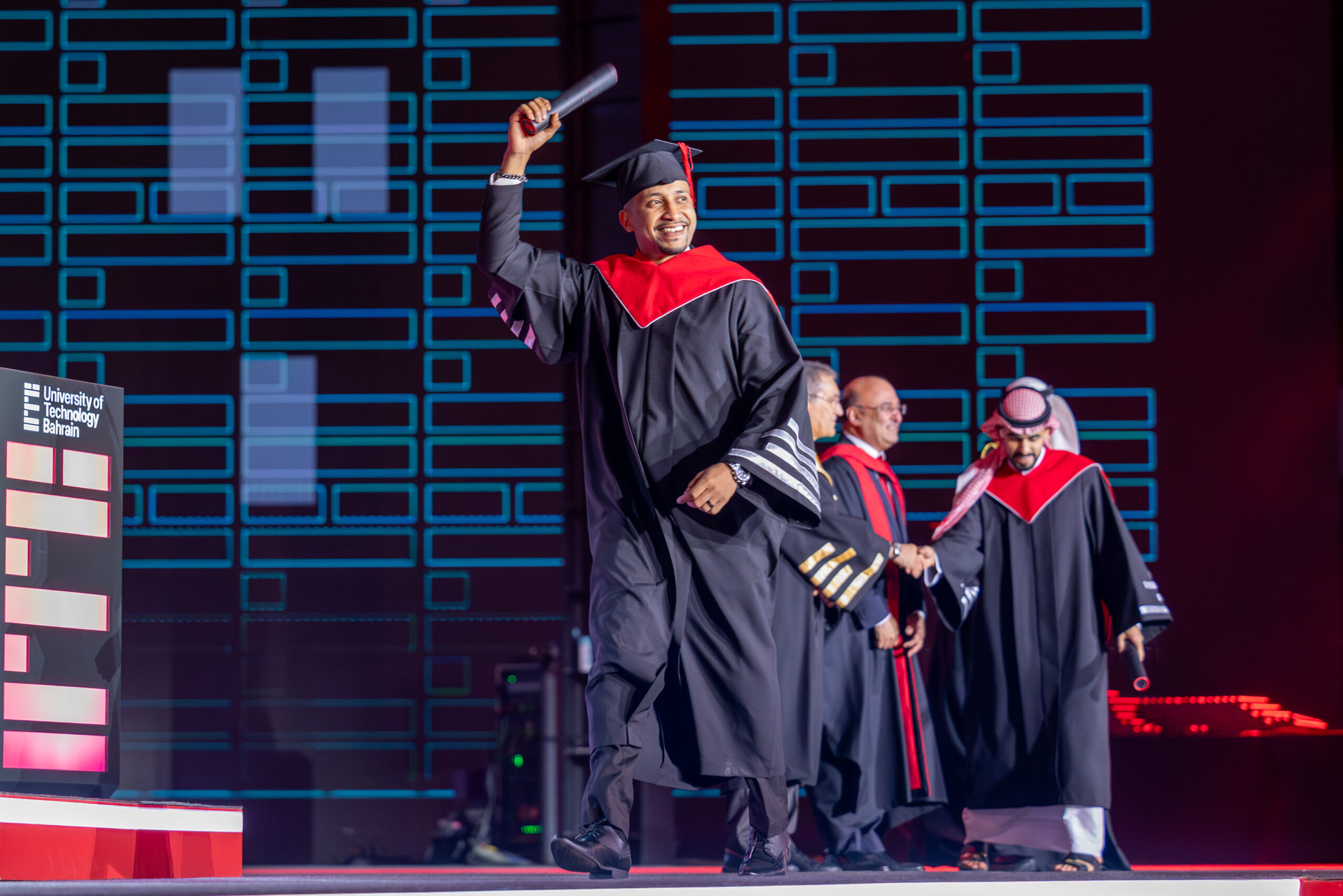The graduates, represented by Abdulla Hasan Sultan, holder of a Bachelor of Science in International Business degree, reflected on the shared journey of resilience, collaboration, and ambition, expressing heartfelt gratitude to Bahrain’s leadership for their support of the education sector, as well as to UTB’s administration and faculty for their guidance and mentorship throughout their academic journey. They pledged to apply their acquired knowledge and skills in the service of the country, contributing actively to its continued progress and prosperity, and raising Bahrain’s profile on regional and global platforms.