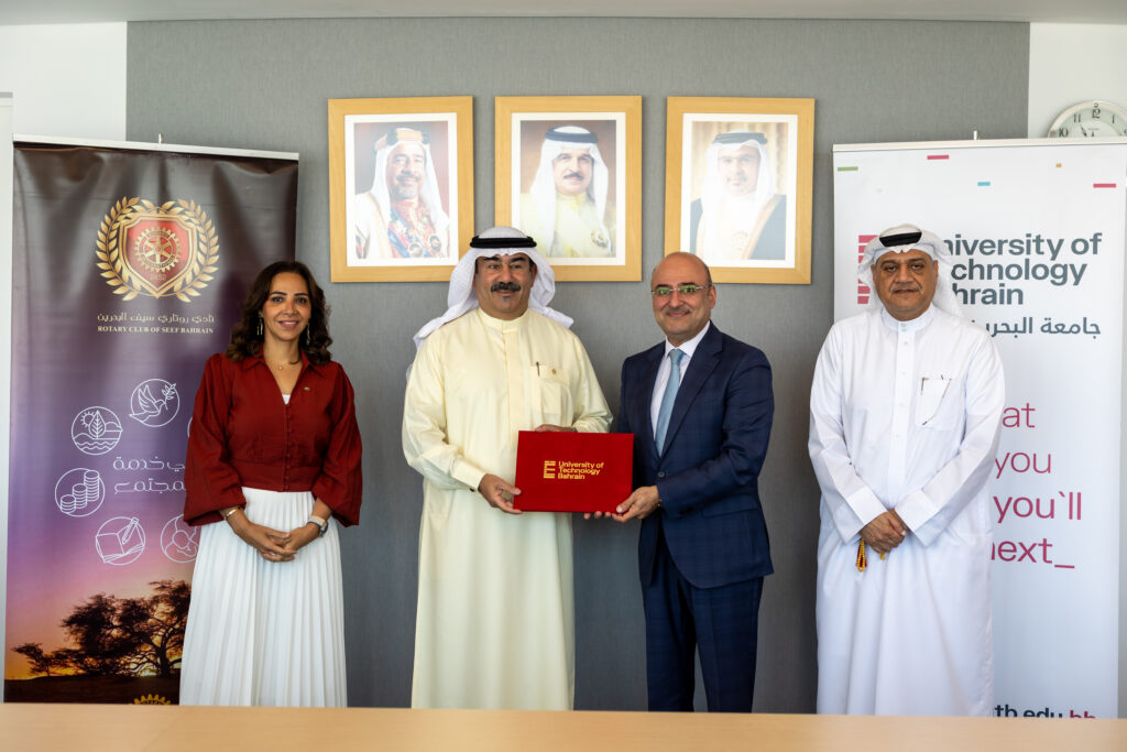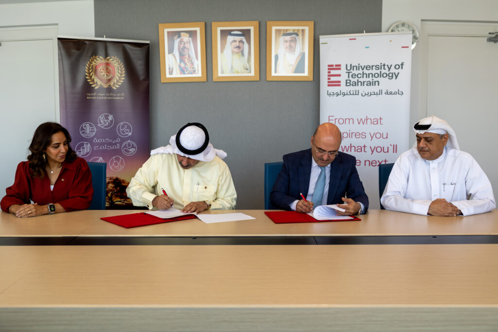 The University of Technology Bahrain (UTB) has signed a Memorandum of Understanding MoU with the Rotary Club of Seef, solidifying a collaborative environmental action aimed at supporting the Kingdom’s national marine conservation initiative – the MaRiva Project.