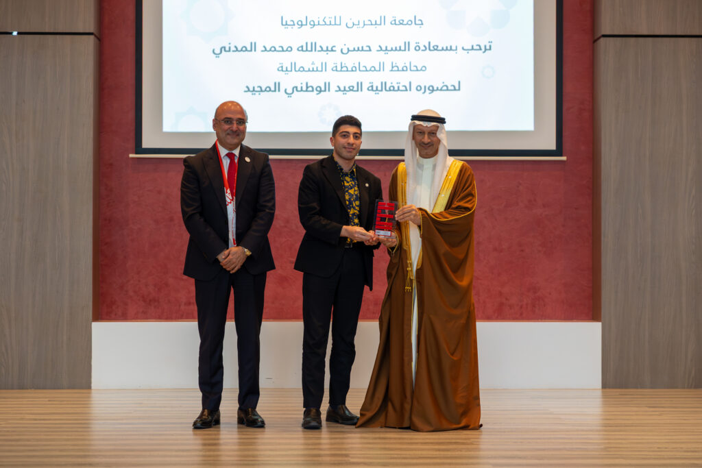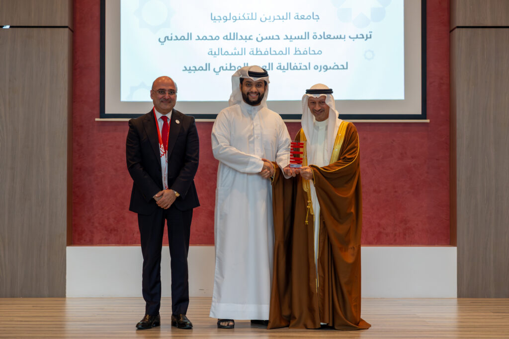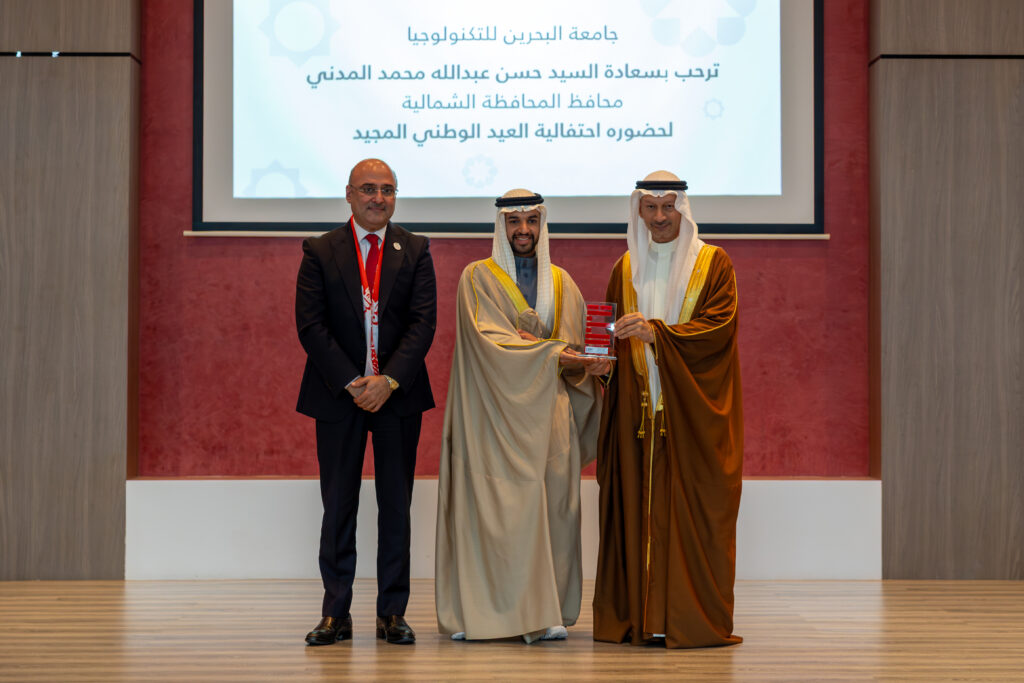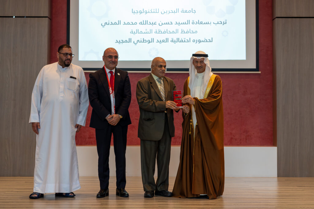 The event was graced by His Excellency Mr Hassan Abdullah Mohammed Al Madani, Governor of the Northern Governorate, alongside university leadership, faculty, staff, community partners, alumni, and students. The celebration began with the national anthem, followed by a speech from Dr Hasan Almulla, President of UTB, who extended warm congratulations to His Majesty King Hamad bin Isa Al Khalifa, His Royal Highness Prince Salman bin Hamad Al Khalifa, the Crown Prince and Prime Minister, and the people of the Kingdom of Bahrain. He highlighted that this year’s theme embodies the deep sense of belonging and national pride shared by Bahrainis, while reaffirming UTB’s commitment to instilling these values in its students and preparing a generation capable of contributing to the Kingdom’s continued development under wise leadership.