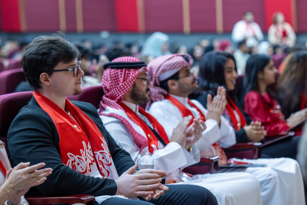 The celebration featured a vibrant lineup of national and cultural performances, showcasing the creativity and talent of Bahraini youth. UTB student Nasser Abdulla Altooq mesmerised the audience with his magical tricks inspired by Bahrain’s rich history. A dedicated National Day video was screened, followed by a heartfelt poetry recital by Bahraini poet Ms Sabeeka Al Shehi, whose verses celebrated the Kingdom’s progress, heritage, and national identity.