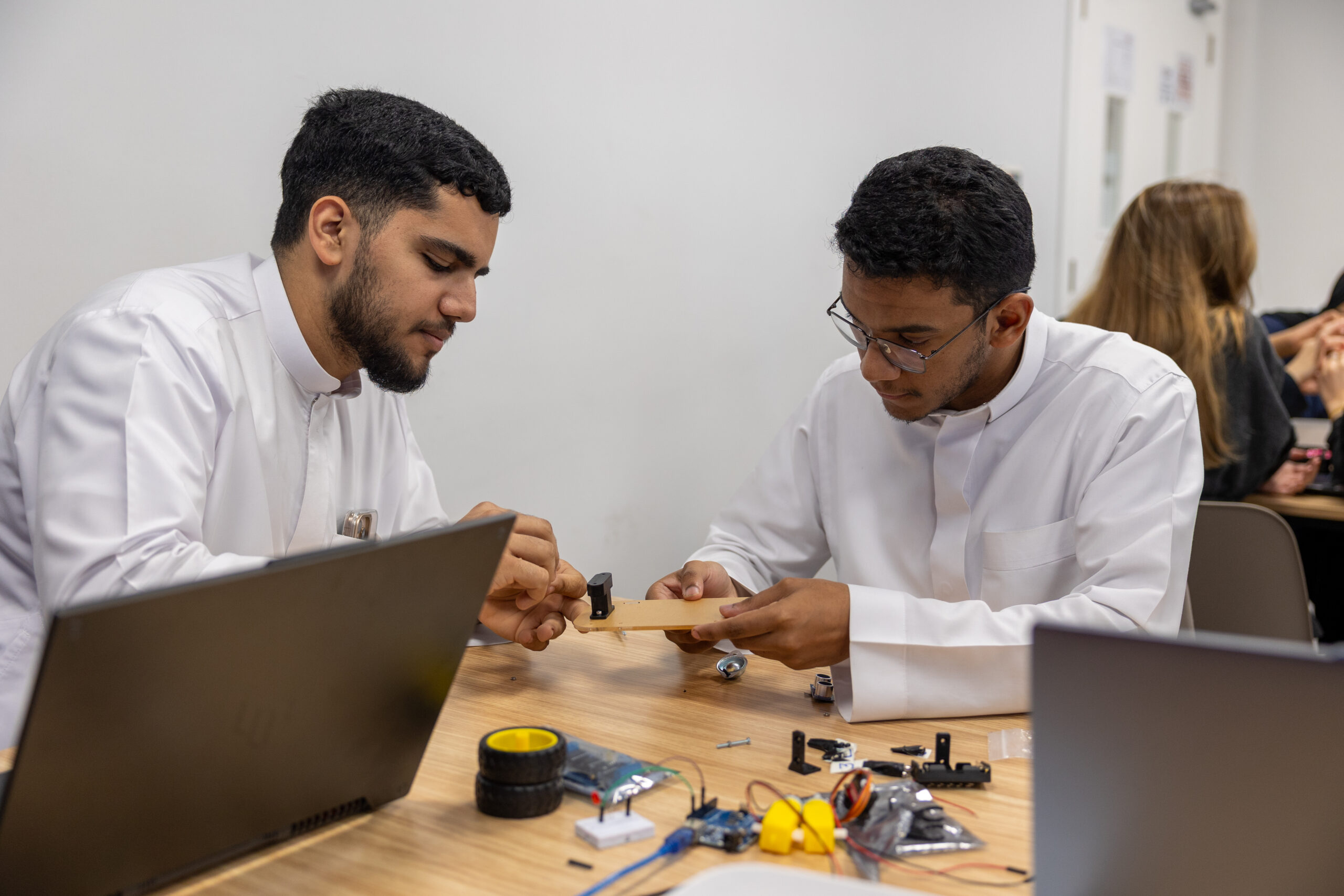 Led by Nathalie Alomari, BS in Mechatronics Engineering student, the workshop series introduced participants to practical skills in 3D printing, robotic systems, soldering, and coding using industry-relevant tools such as Fusion 360, Arduino IDE, and Processing. Guided entirely by student mentors, the labs created a collaborative environment where new engineers could explore, experiment, and build with confidence while strengthening peer-to-peer learning.